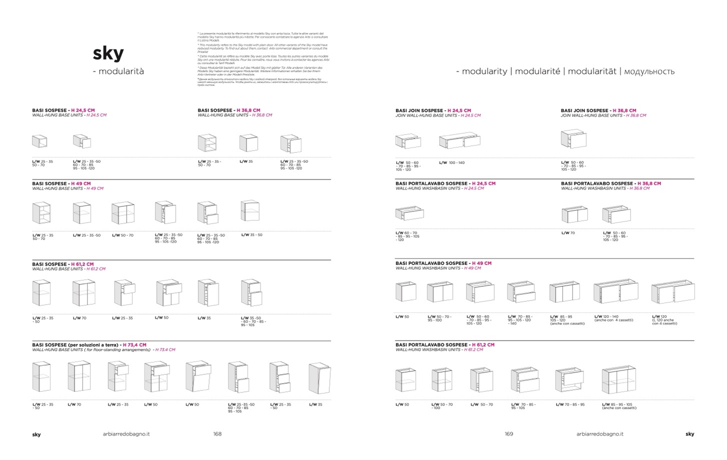 * La presente modularità fa riferimento al modello Sky con anta liscia. Tutte le altre varianti del