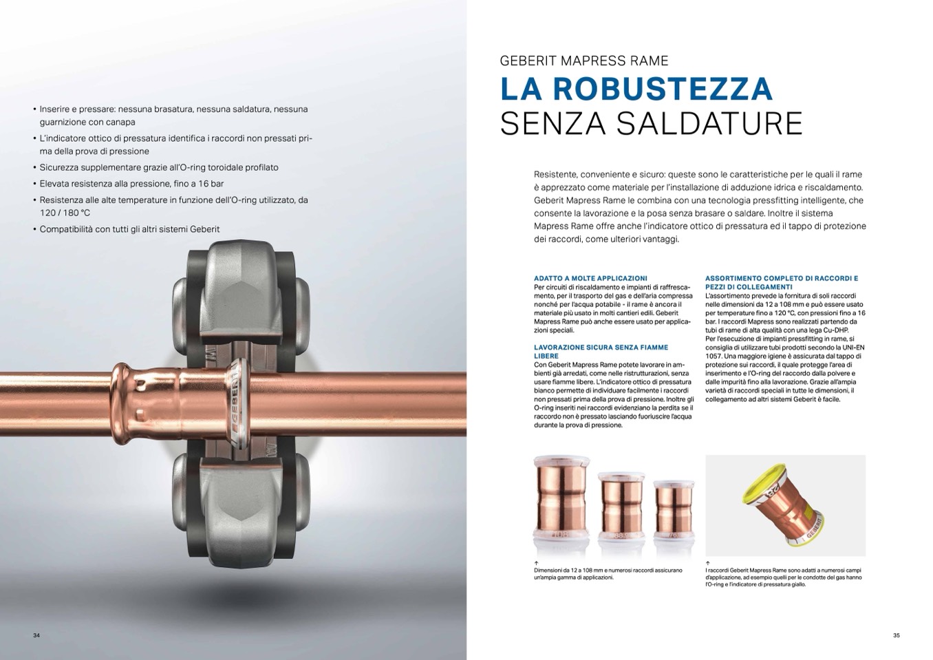 I raccordi Geberit Mapress Rame sono adatti a numerosi campi