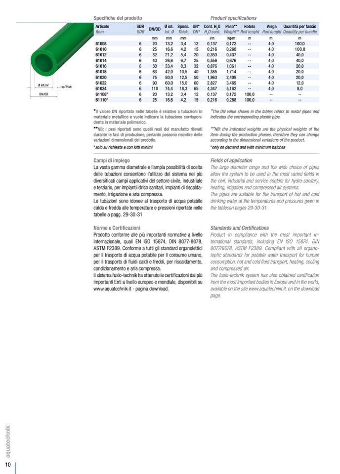 internazionale, quali EN ISO 15874, DIN 8077-8078,