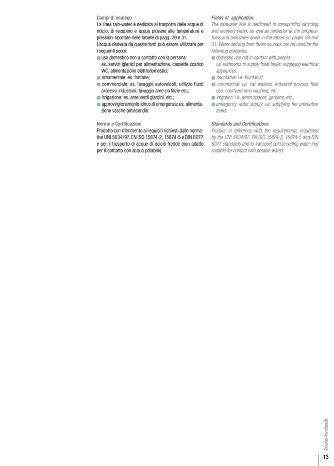 by the UNI 5634/97, EN ISO 15874-2, 15874-5 and DIN