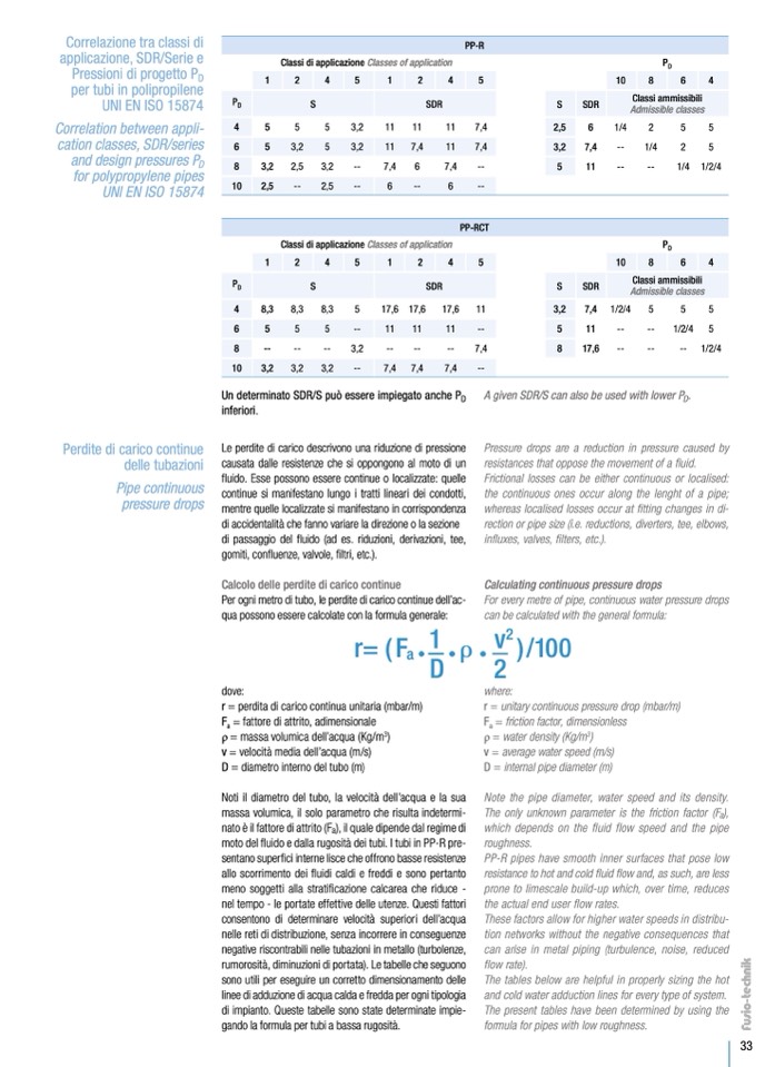 Per ogni metro di tubo, le perdite di carico continue dell’ac-