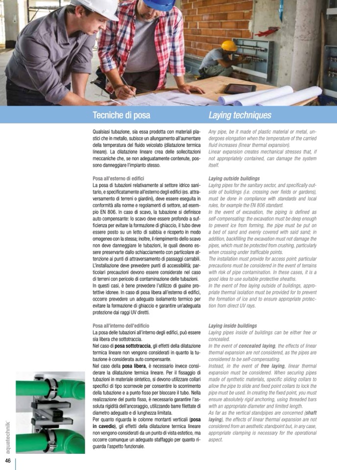 La posa di tubazioni relativamente al settore idrico sani-