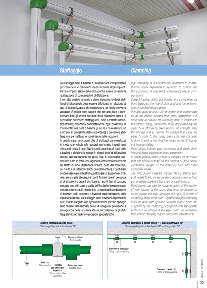 absorbing linear expansion. Aquatechnik pipe clamping