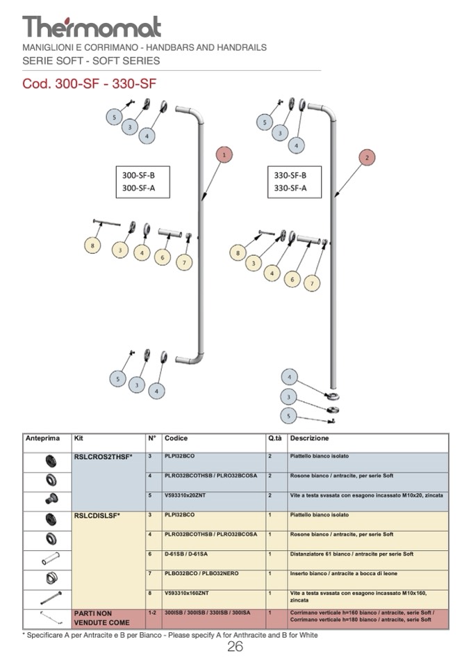 * Specificare A per Antracite e B per Bianco - Please specify A for Anthracite and B for White