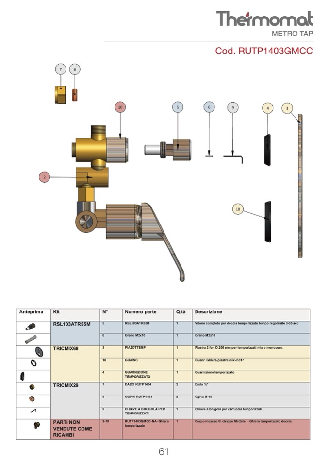 Corpo incasso th c/razze filettate - Ghiera temporizzato doccia