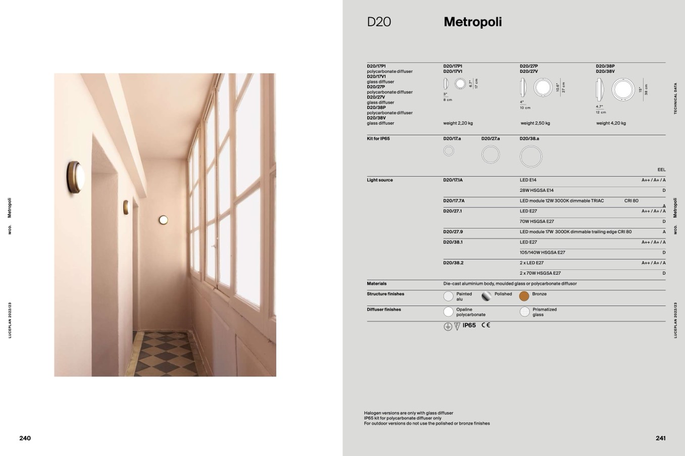 Halogen versions are only with glass diffuser