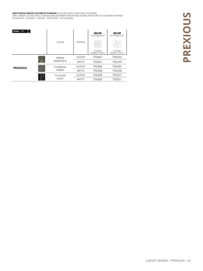 GRÈS CÉRAME COLORE DANS LA MASSE/DURCHGEFÄRBTE FEINSTEINZEUG/GRES PORCELÁNICO COLOREADO EN MASA