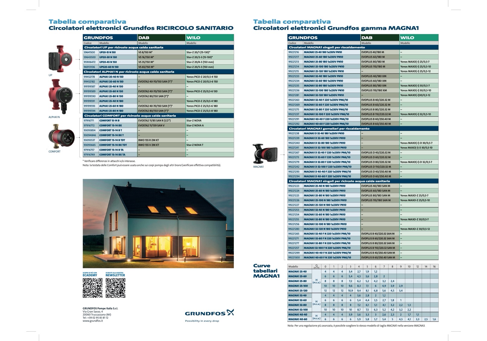 Nota: la testata delle Comfort può essere usata anche sui corpi pompa degli altri brand (verifi