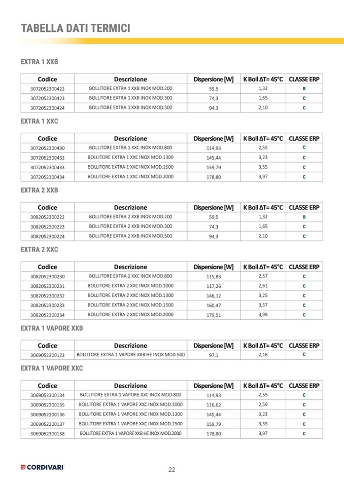 BOLLITORE EXTRA 1 VAPORE XXB HE INOX MOD.500
