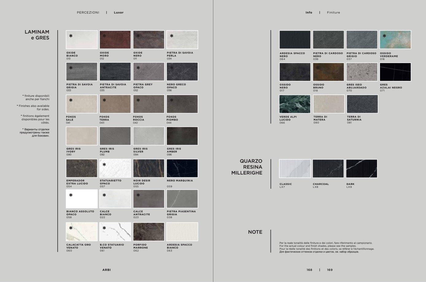 Per la reale tonalità delle finiture e dei colori, fare riferimento al campionario.