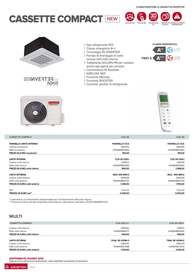 ** Il prezzo di listino del set comprende unità esterna, unità interna, pannello e TELECOMANDO ECO.