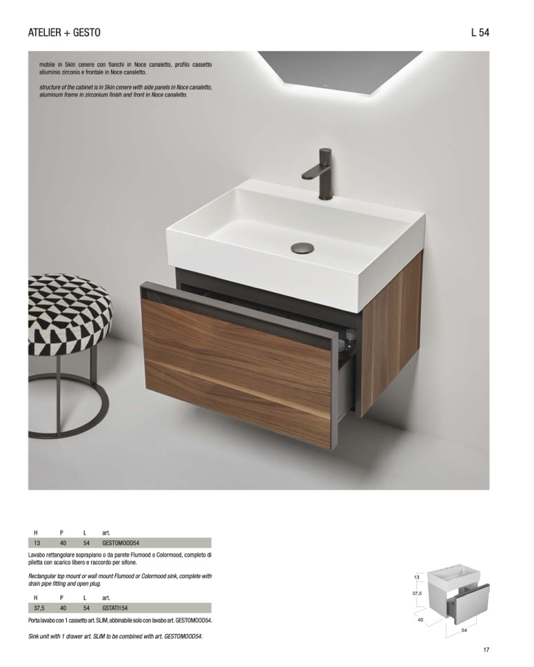 Porta lavabo con 1 cassetto art. SLIM, abbinabile solo con lavabo art. GESTOMOOD54.