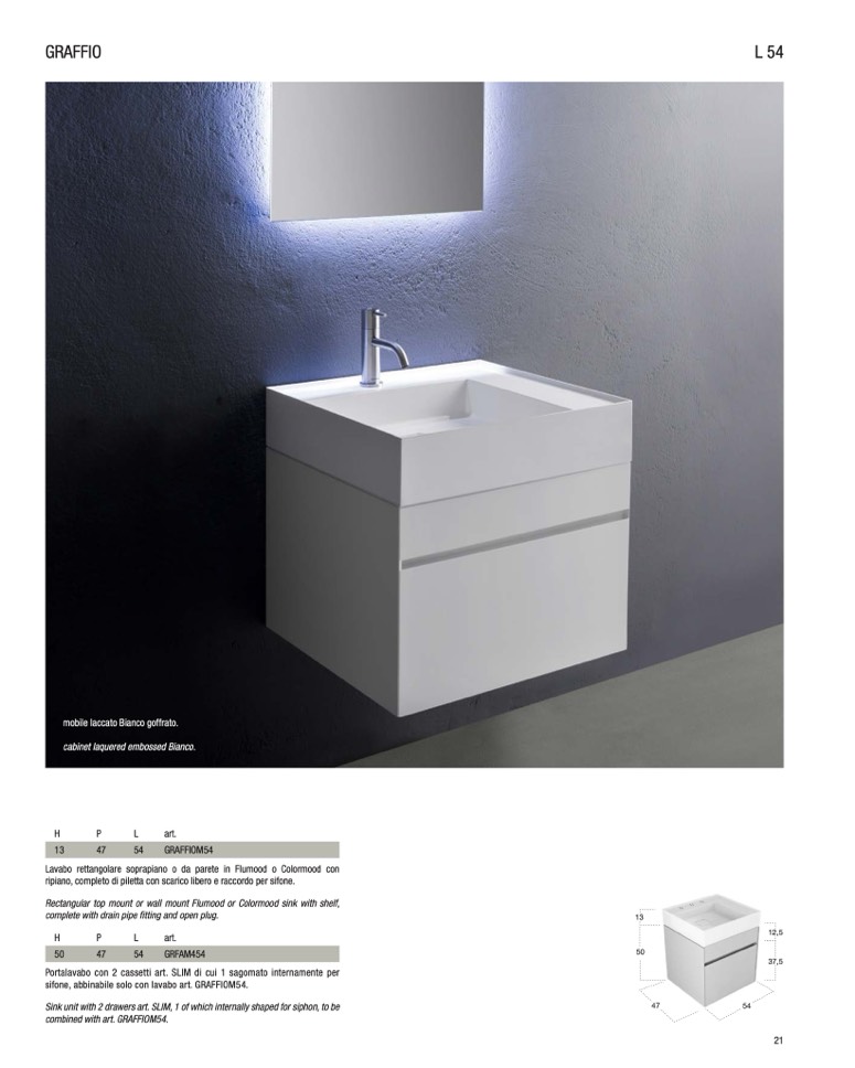 sifone, abbinabile solo con lavabo art. GRAFFIOM54.