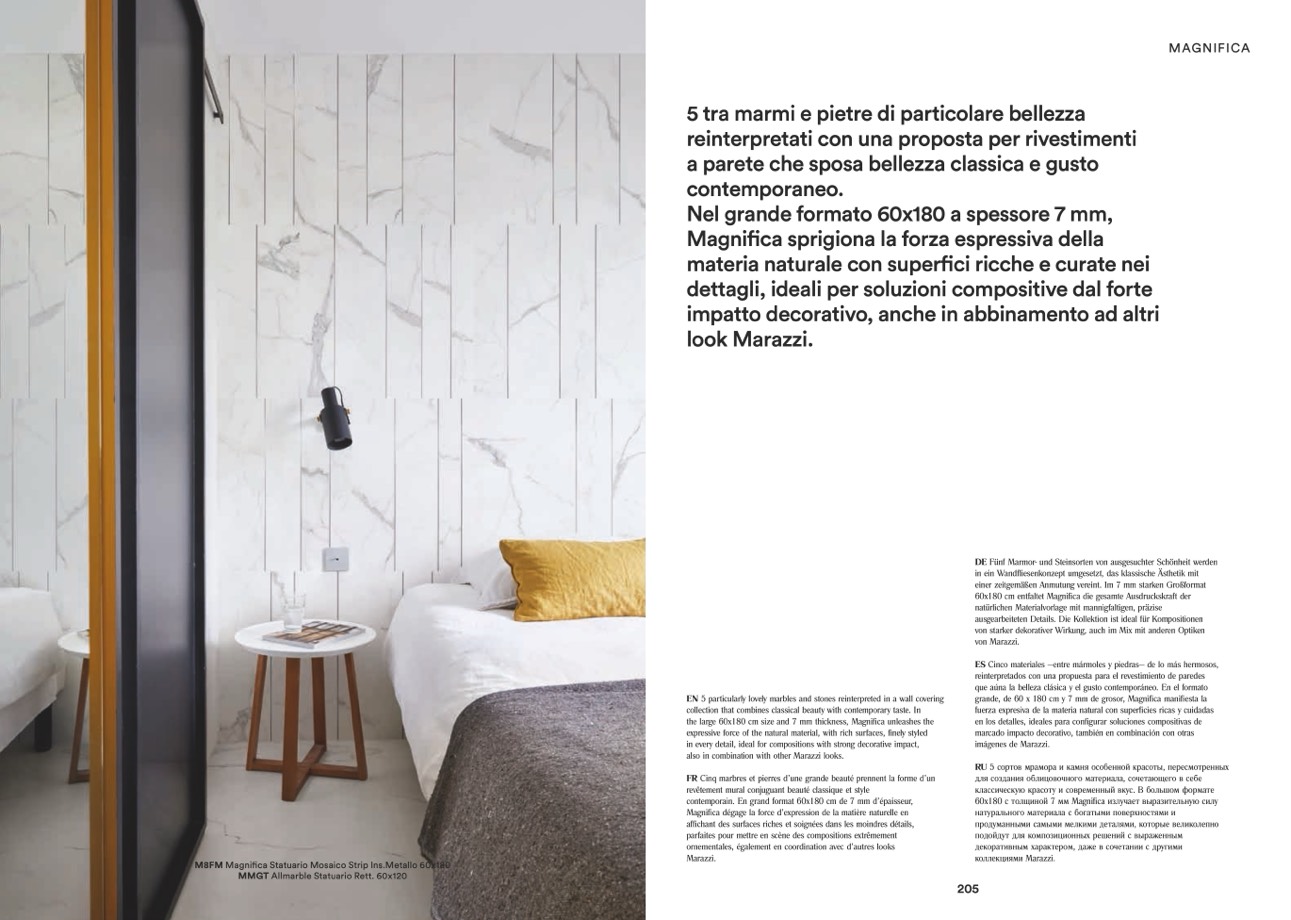 the large 60x180 cm size and 7 mm thickness, Magnifica unleashes the