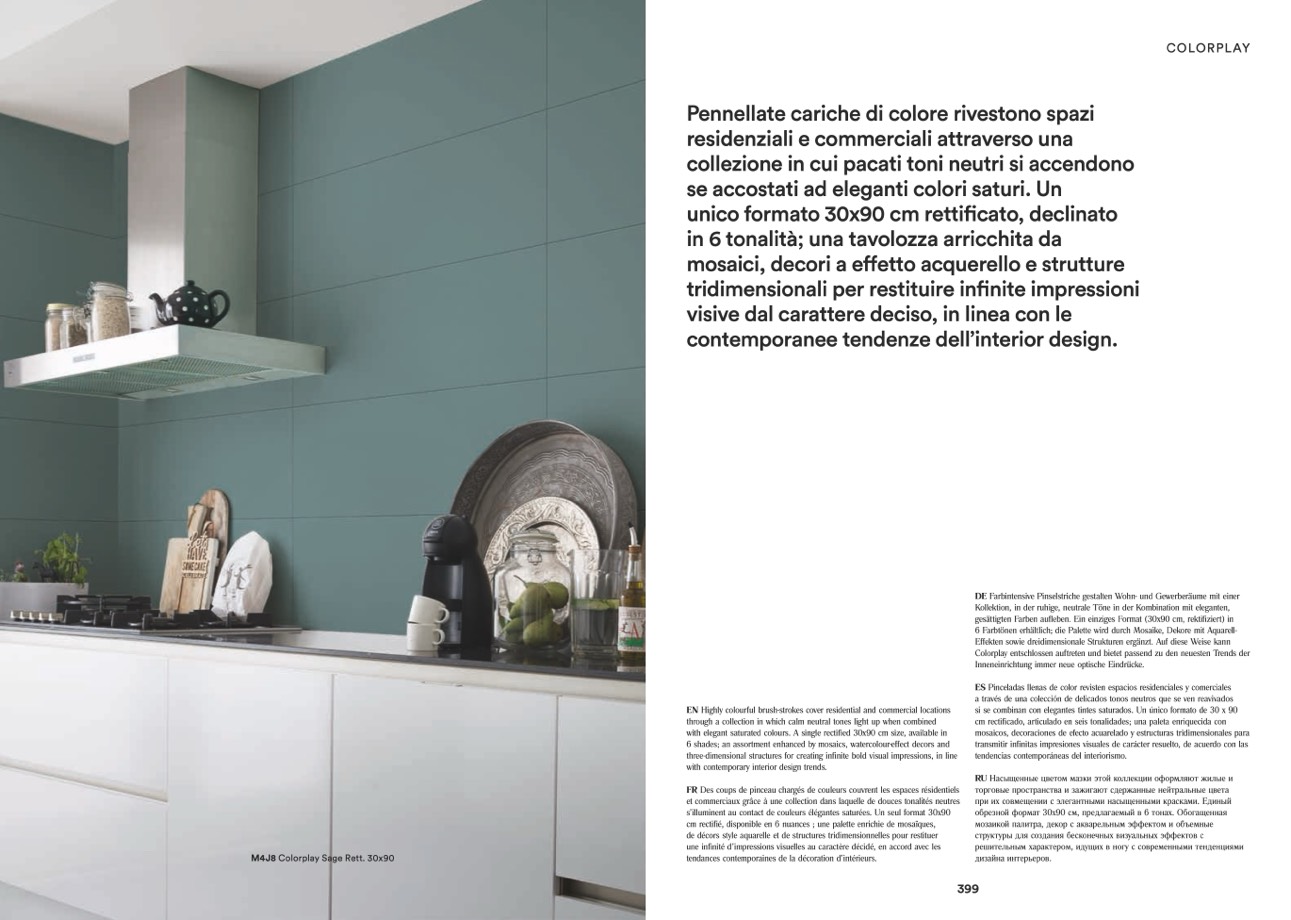 gesättigten Farben aufleben. Ein einziges Format (30x90 cm, rektifiziert) in