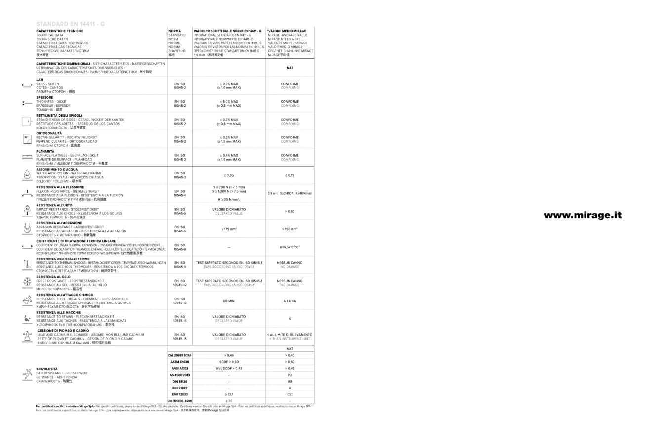 Per i certificati specifici, contattare Mirage SpA - For specific certificates, please contact Mirage SPA - F