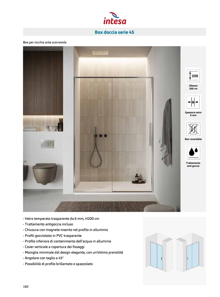 - Vetro temperato trasparente da 6 mm, H200 cm