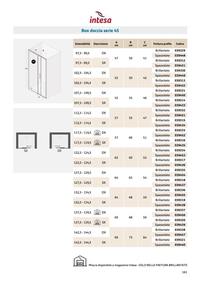 Misura disponibile a magazzino Intesa - SOLO NELLA FINITURA BRILLANTATO