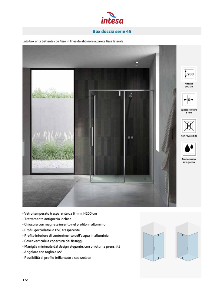 Lato box anta battente con fisso in linea da abbinare a parete fissa laterale