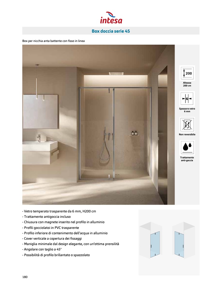 - Vetro temperato trasparente da 6 mm, H200 cm