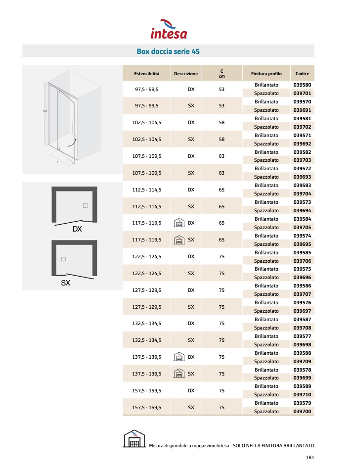 Misura disponibile a magazzino Intesa - SOLO NELLA FINITURA BRILLANTATO