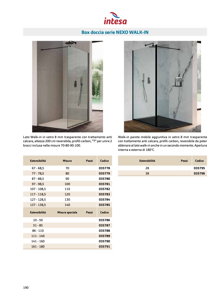 Lato Walk-in in vetro 8 mm trasparente con trattamento ant