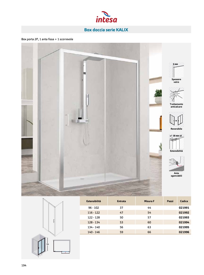Box porta 2P, 1 anta fissa + 1 scorrevole