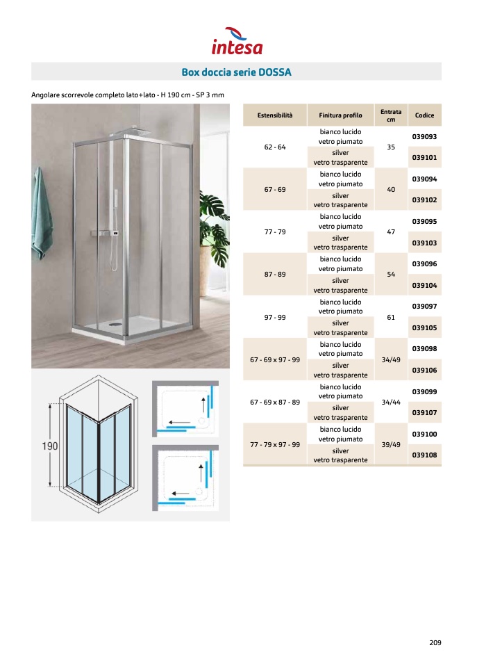 Angolare scorrevole completo lato+lato - H 190 cm - SP 3 mm