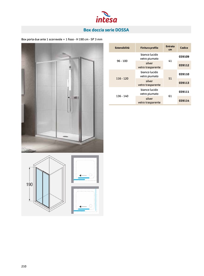 Box porta due ante 1 scorrevole + 1 fisso - H 190 cm - SP 3 mm