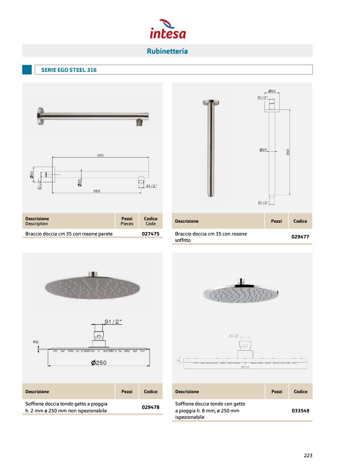 a pioggia h. 8 mm, ø 250 mm