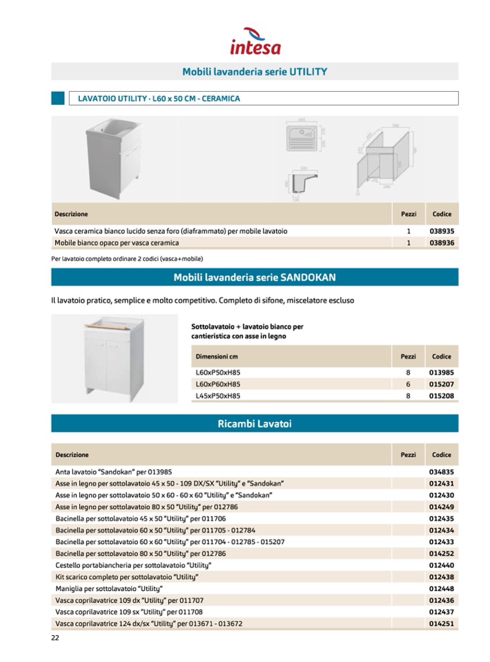 Per lavatoio completo ordinare 2 codici (vasca+mobile)