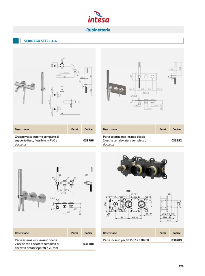 Parte esterna mix incasso docci