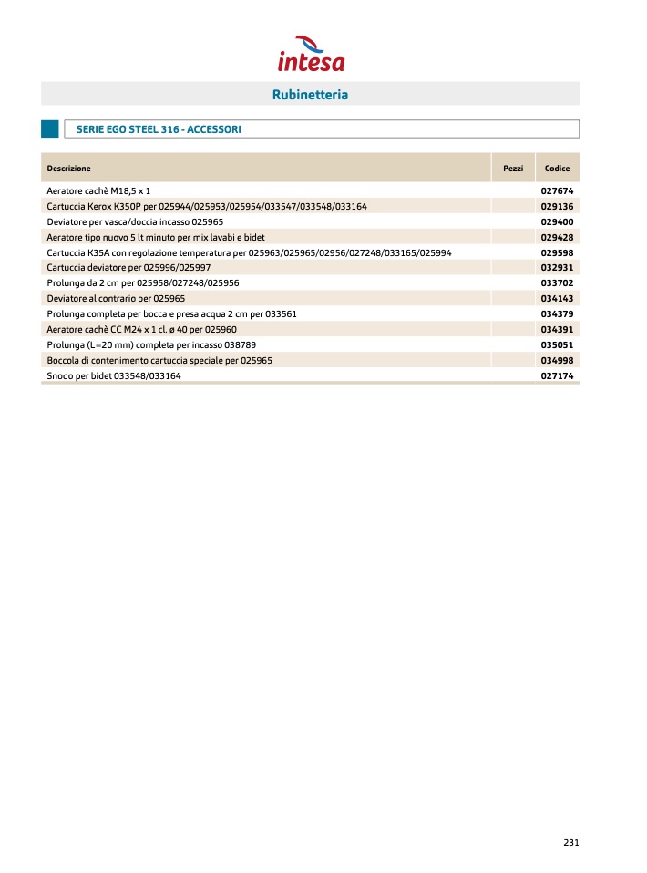 Cartuccia K35A con regolazione temperatura per 025963/025965/02956/027248/033165/025994