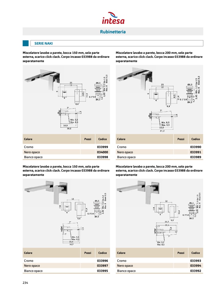 esterna, scarico click clack. Corpo incasso 033988 da ordinare