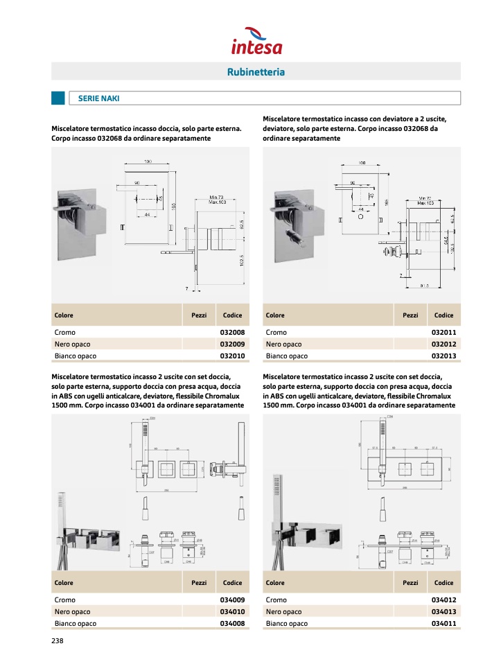 1500 mm. Corpo incasso 034001 da ordinare separatamente