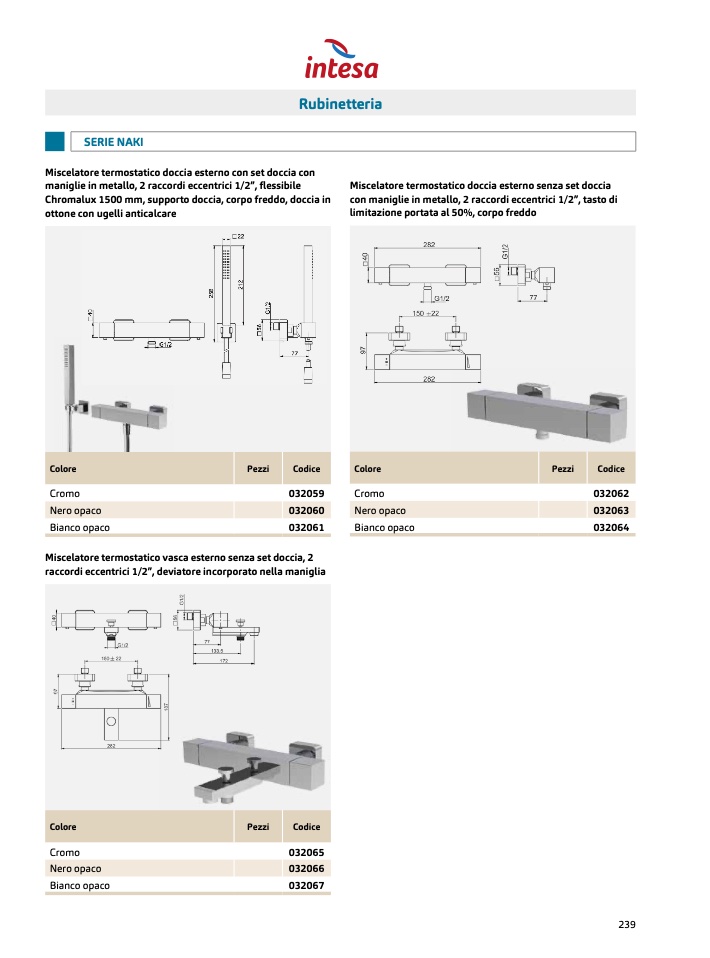 raccordi eccentrici 1/2”, deviatore incorporato nella maniglia