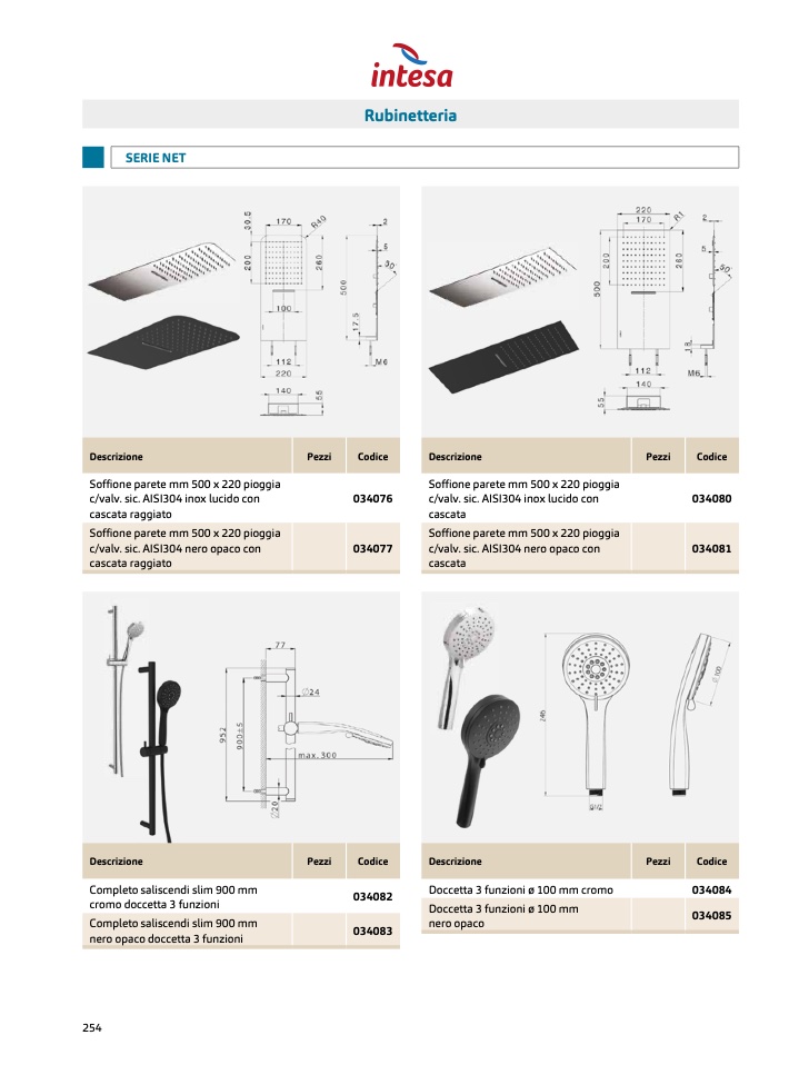 Soffione parete mm 500 x 220 pioggi