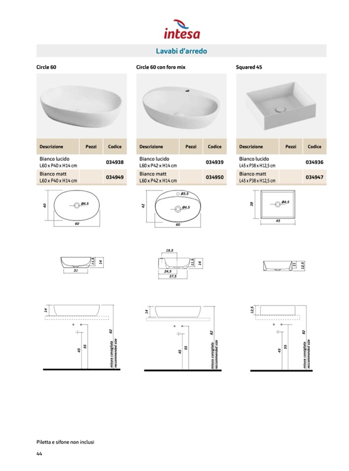 Piletta e sifone non inclusi