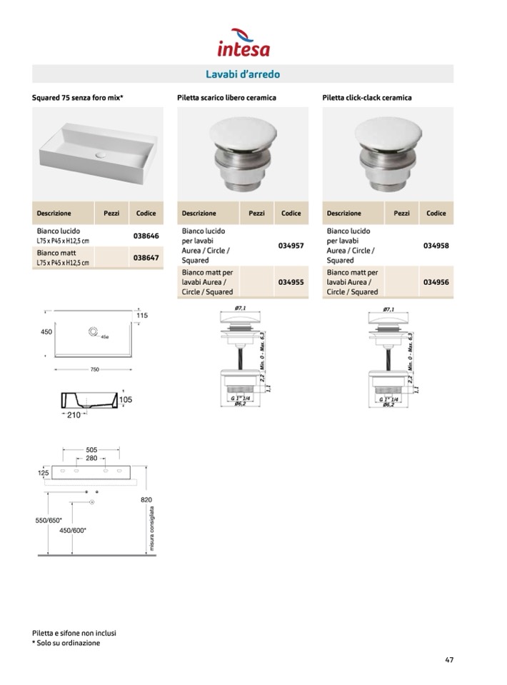 Piletta scarico libero ceramica