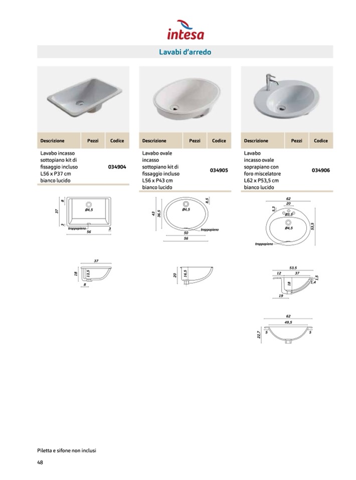 Piletta e sifone non inclusi