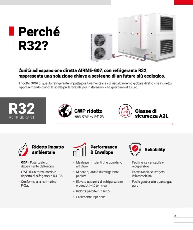 L'unità ad espansione diretta AIRME-G07, con refrigerante R32,