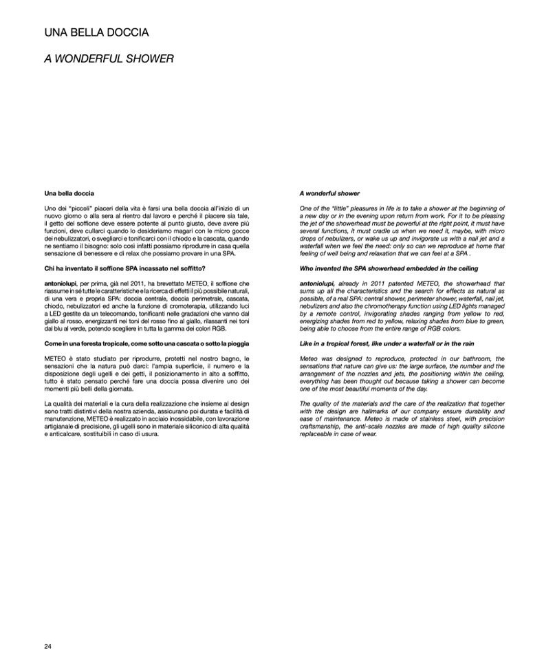 antoniolupi, already in 2011 patented METEO, the showerhead that