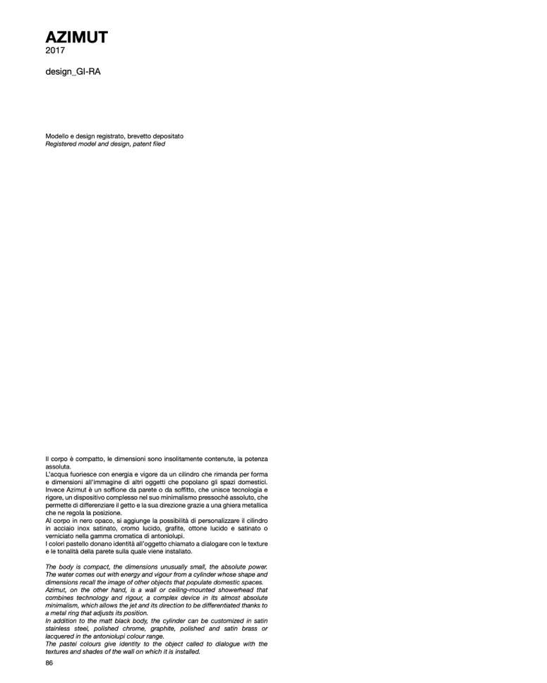 Azimut, on the other hand, is a wall or ceiling-mounted showerhead that