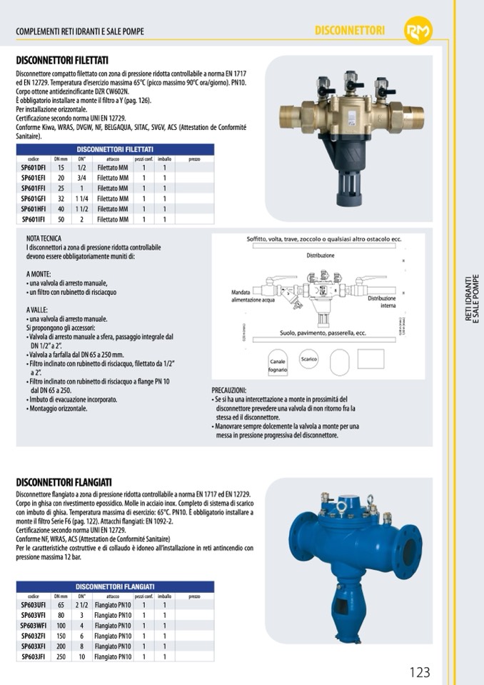 ed EN 12729. Temperatura d’esercizio massima 65°C (picco massimo 90°C ora/giorno). PN10.
