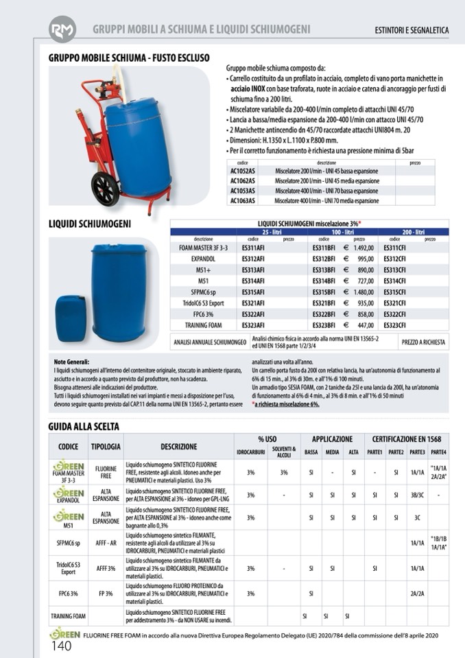 Tutti i liquidi schiumogeni installati nei vari impianti e messi a disposizione per l’uso,