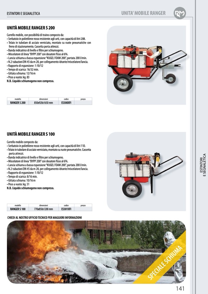 • Lancia schiuma a bassa espansione “KUGEL FOAM 200”, portata 200 l/min.