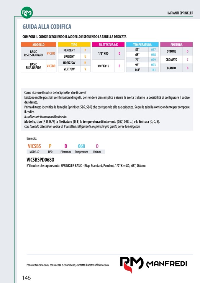 E’ il codice che rappresenta: SPRINKLER BASIC - Risp. Standard, Pendent, 1/2” K = 80, 68°, Ottone.