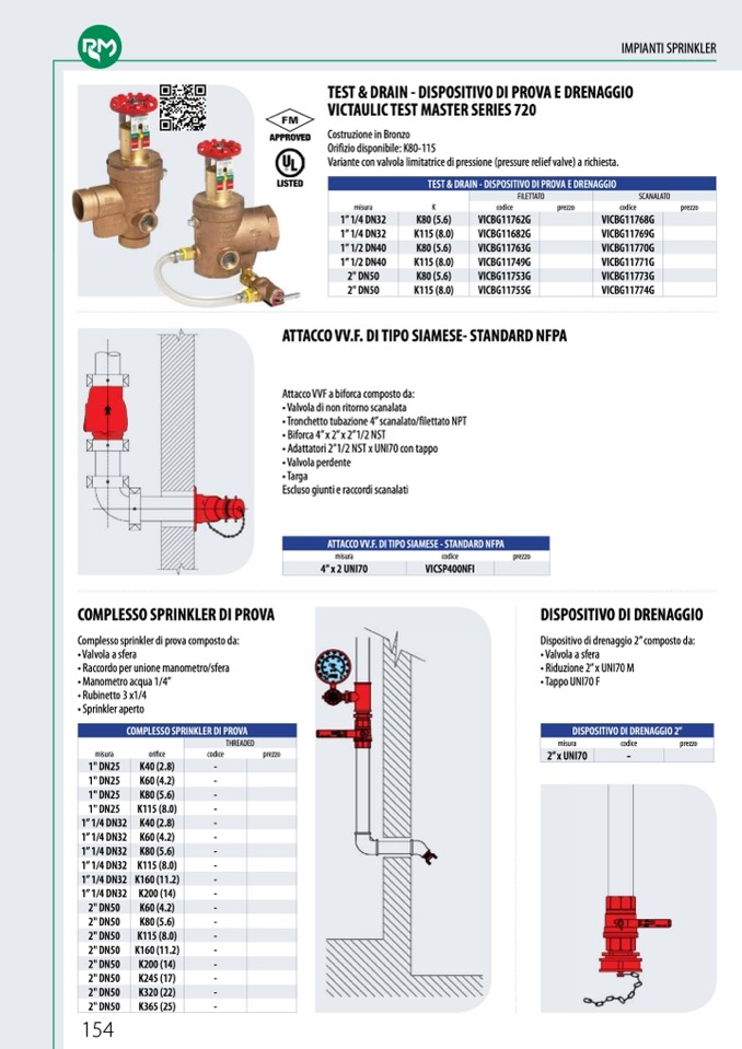 Complesso sprinkler di prova composto da: