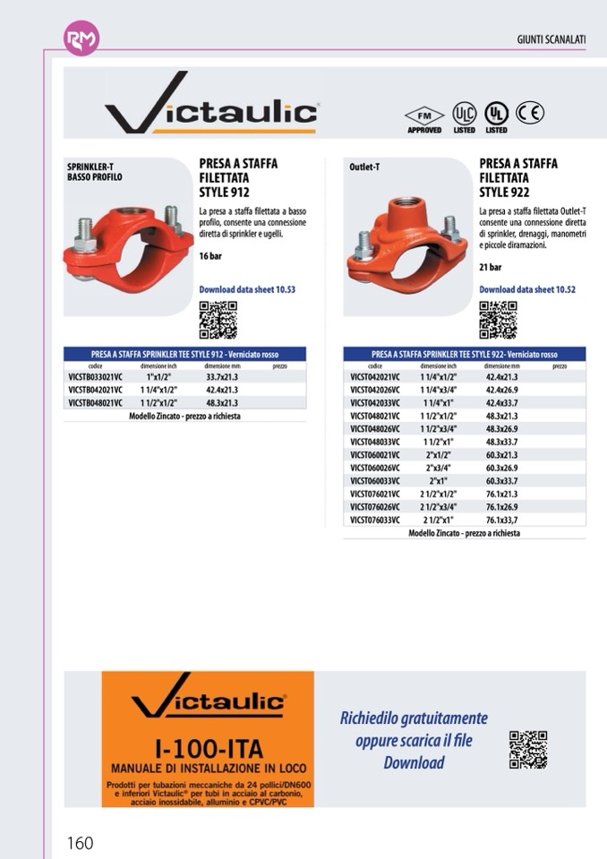 PRESA A STAFFA SPRINKLER TEE STYLE 912 - Verniciato rosso