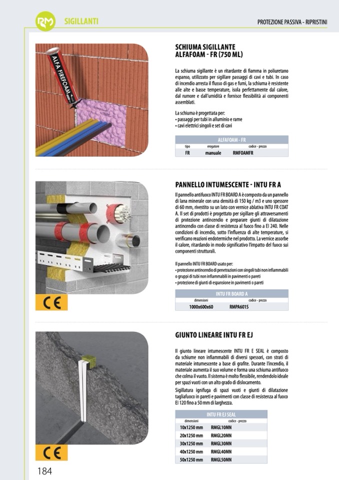 espanso, utilizzato per sigillare passaggi di cavi e tubi. In caso